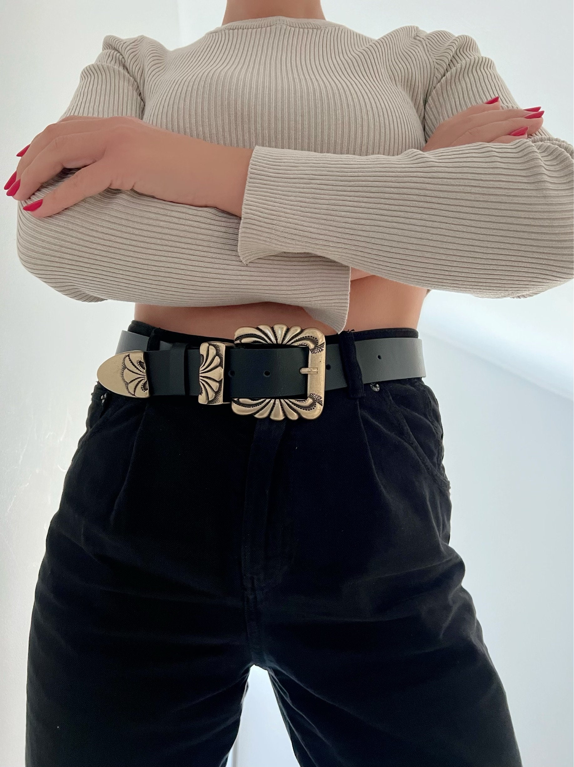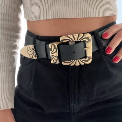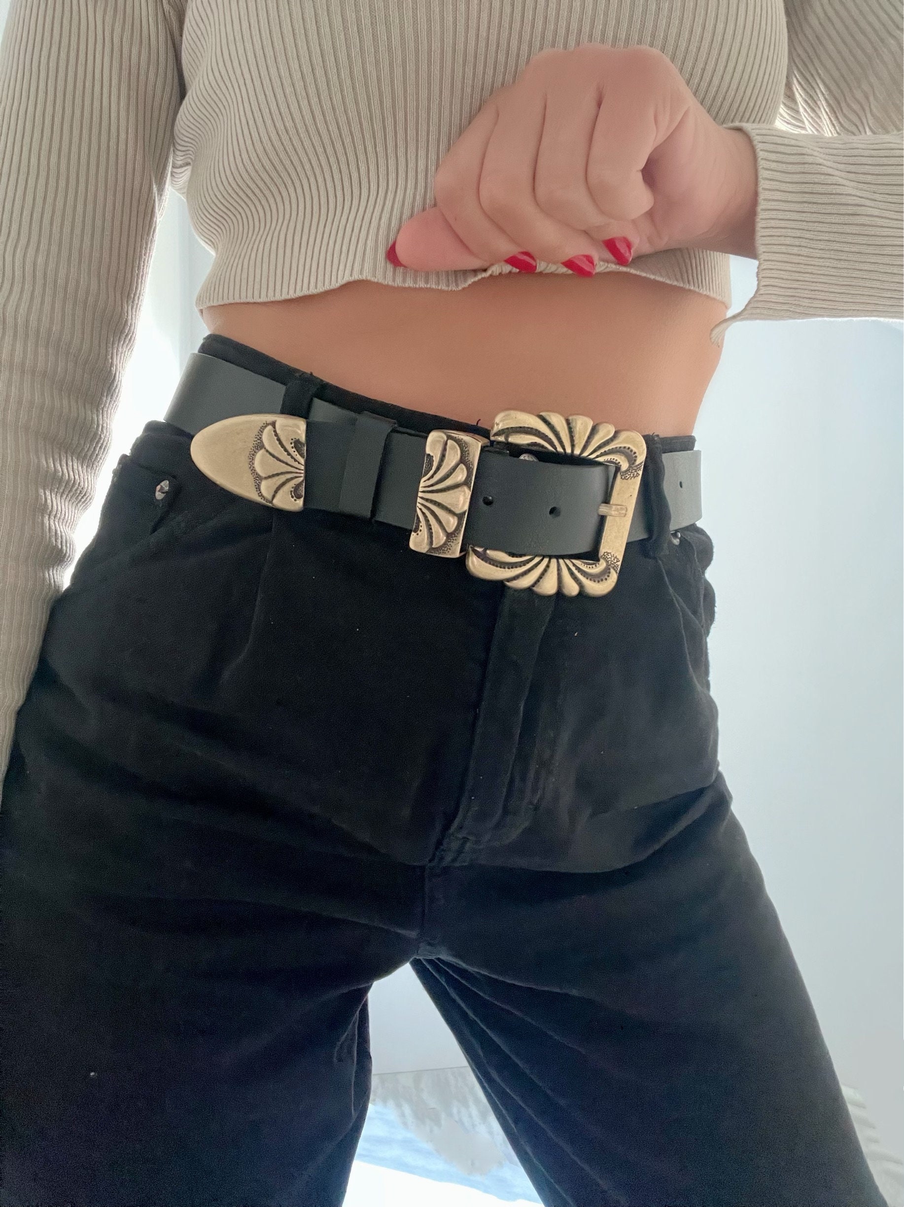 A Handmade Leather Belt for Women is made from real genuine leather in black color with special Bronze Buckle that create a really unique result. At the center of the belt there is a Square buckle with a metal loop besides it and a tiny one in same philosophy at the edge of the belt that completes this unique creation. The belt is lightweight, it has medium width and you can wear it as a high waist belt with dresses or as a low waist belt with your pants. Choose the ideal lenth for you between 8 different dimensions. Measure your waist and add 15 cm to your final length Selection. (THE DIMENSIONS ARE FOR BELT NOT FOR YOUR WAIST). Find it only at our Store.