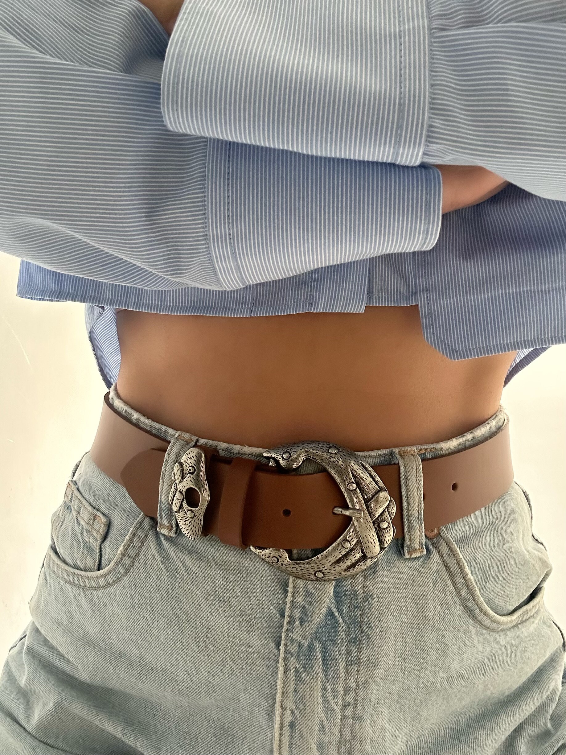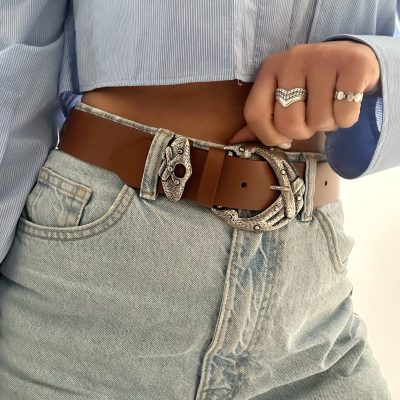 A Handmade Belt for Women that is made from Real Genuine Leather in brown color, that i decorate with a unique set of Silver Buckles and create a really special result. The quality of leather is at the highest level and the buckle is made from zamak in silver color. Choose the ideal length for you between 8 different dimensions. (THE DIMENSIONS YOU CHOOSE REFERES TO THE LENGTH OF THE BELT NOT YOUR WAIST SIZE – MEASURE THE POINT YOU D LIKE TO WEAR IT AND ADD 15 CM FOR THE SIZE YOU SHOULD SELECT). Find them only at our Store.