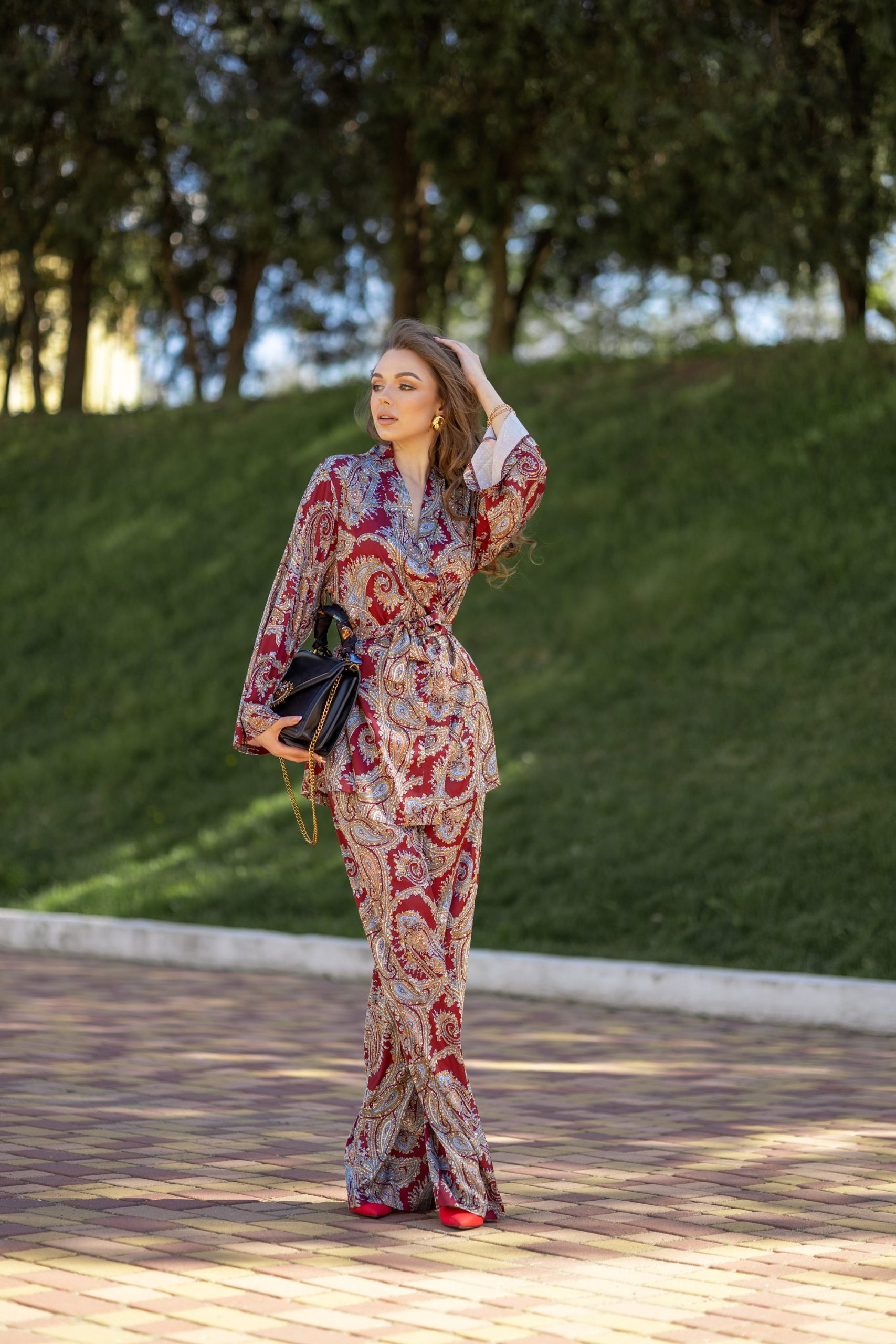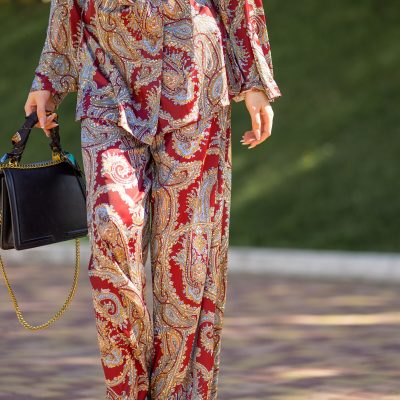 Burgundy Paisley Pajama Set: Armani Silk Loungewear