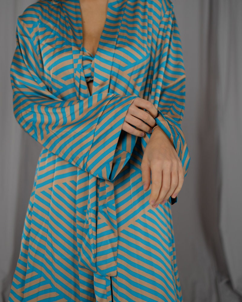 Be the first to review “Silk Pajama Set: Striped Lounge Set With Robe” Cancel reply