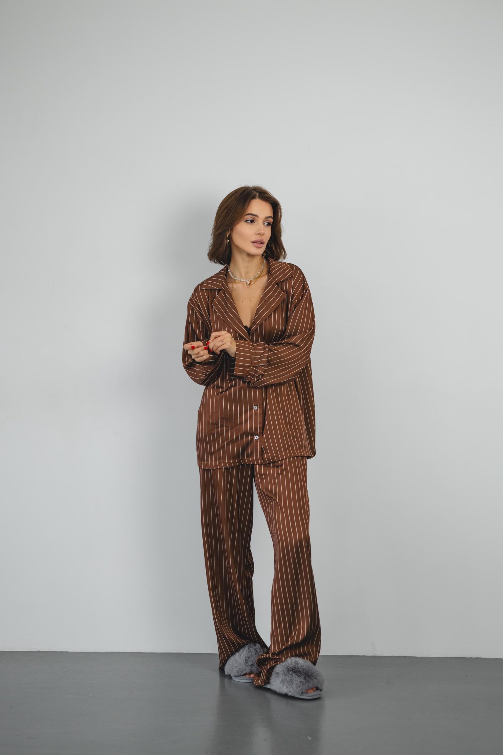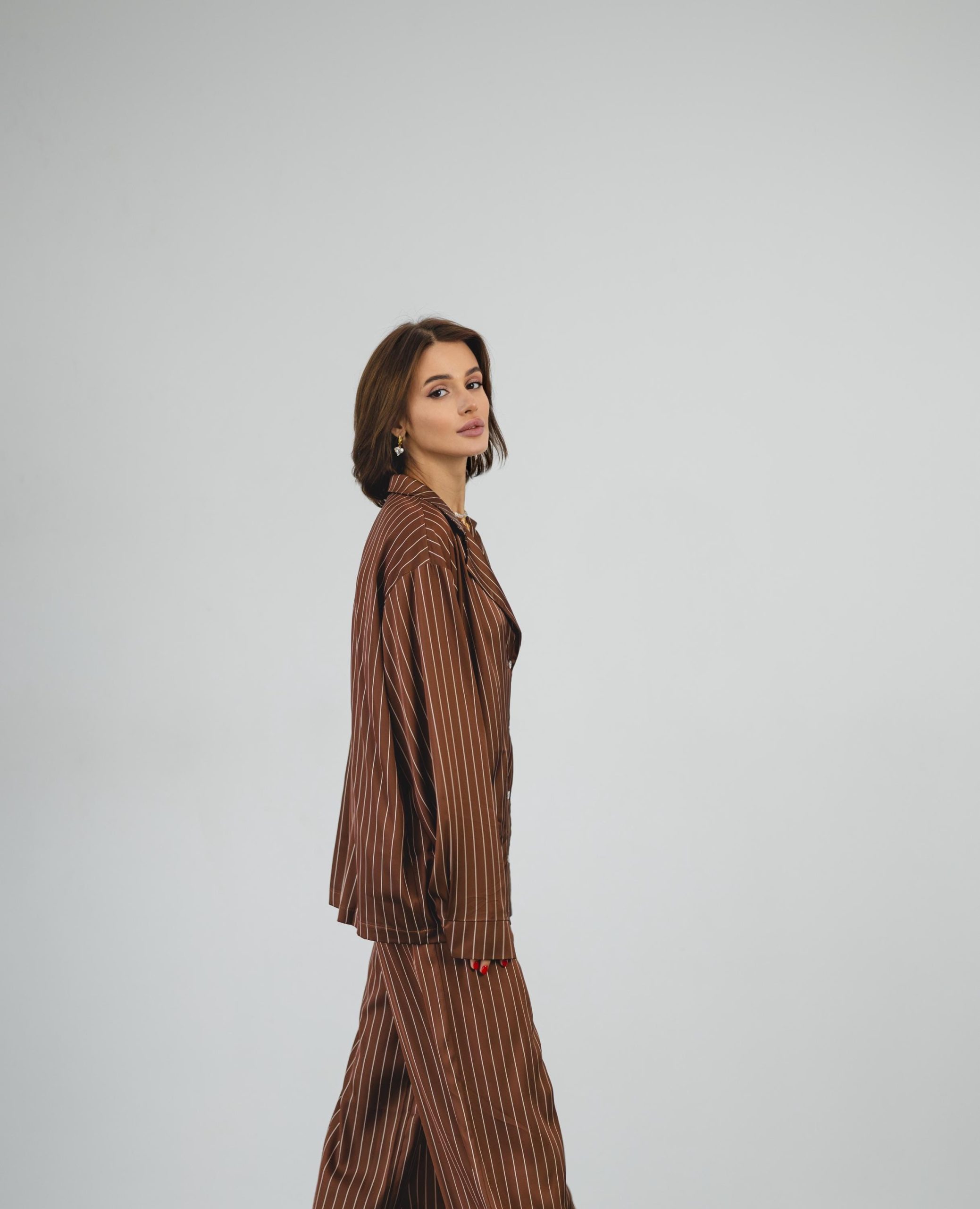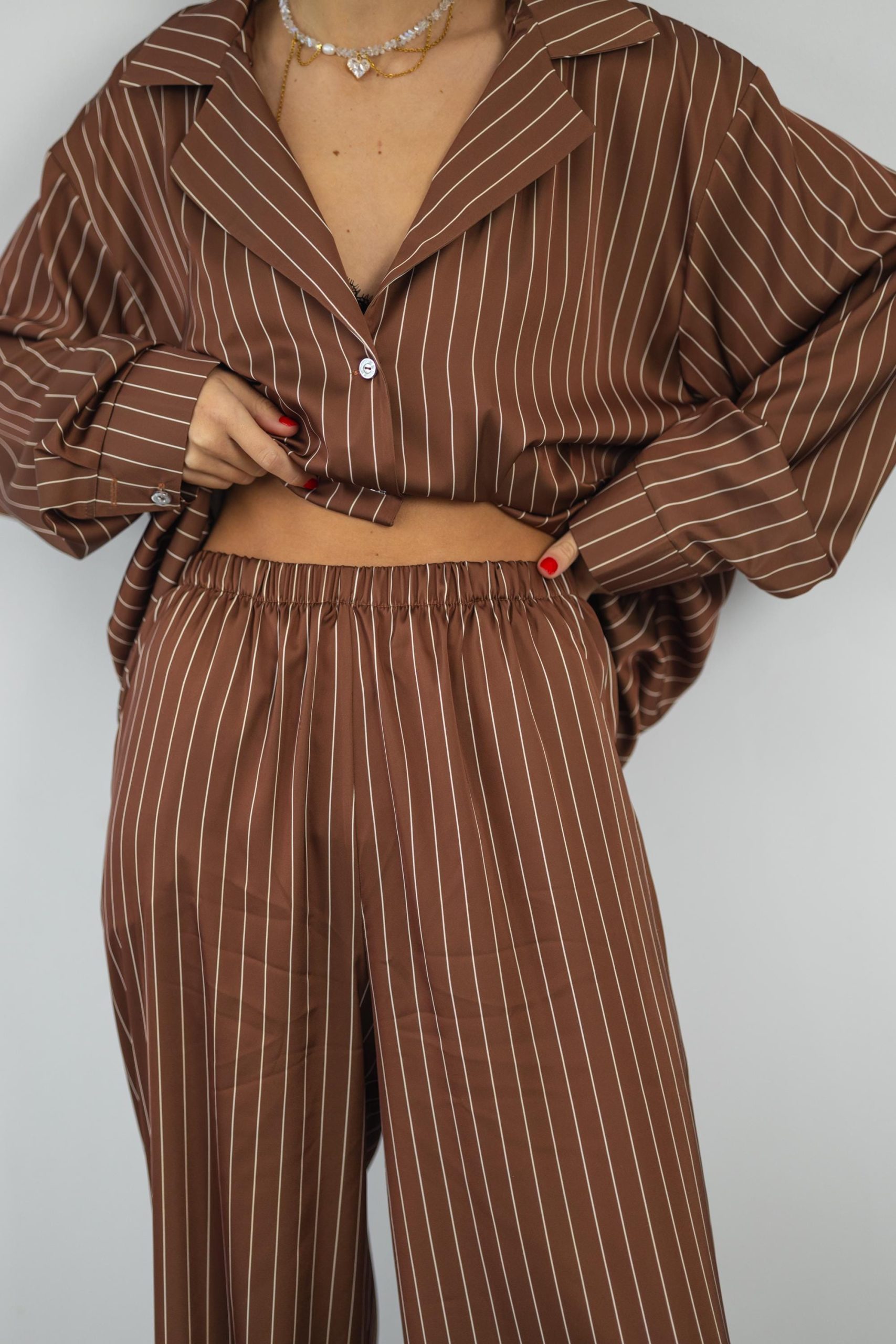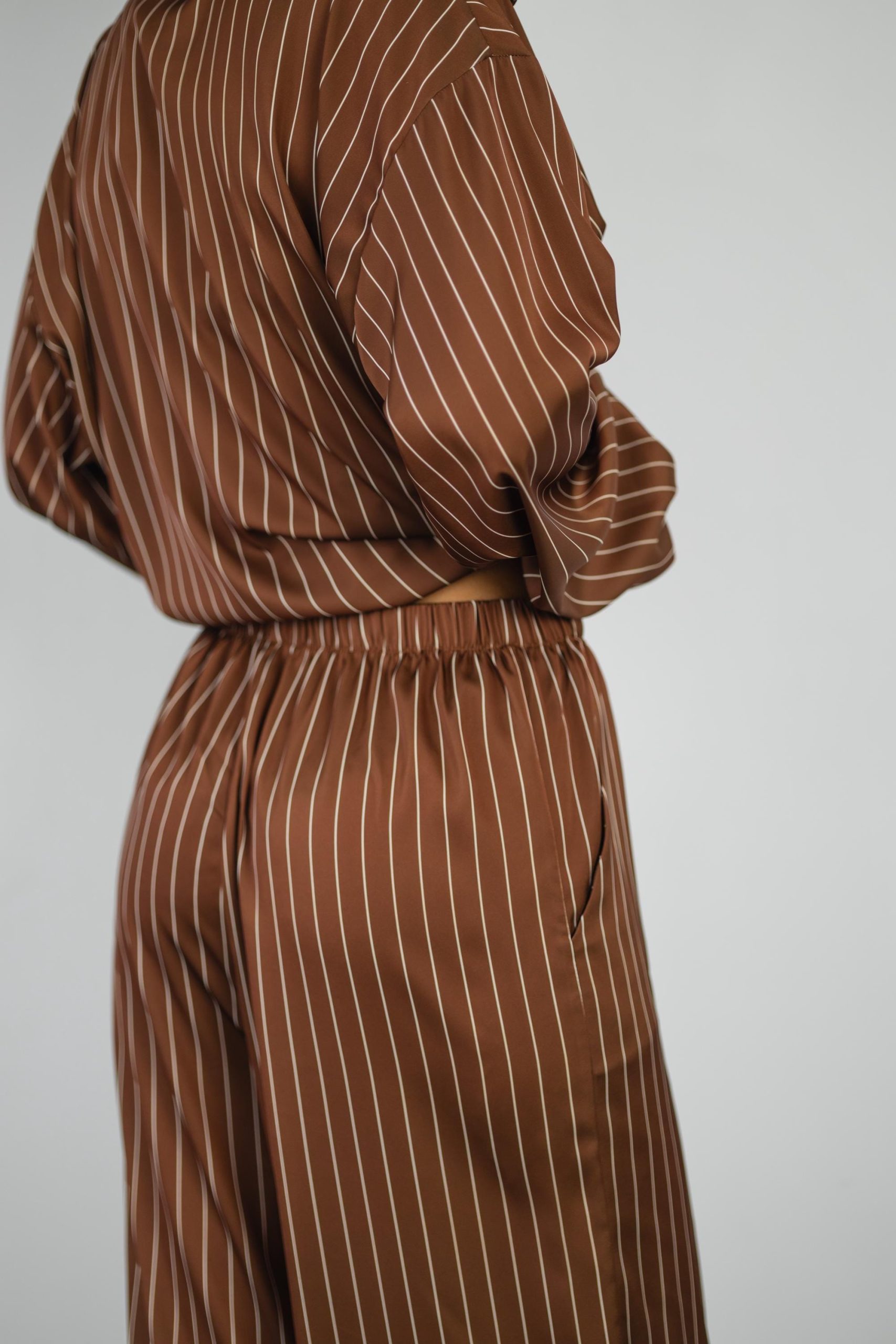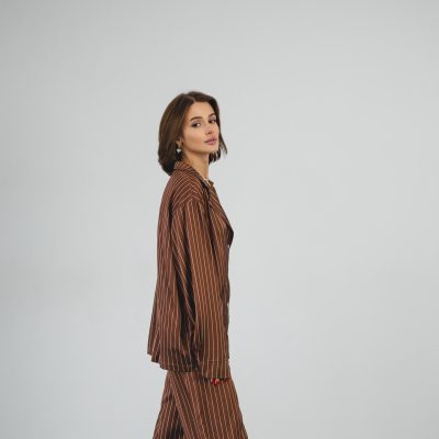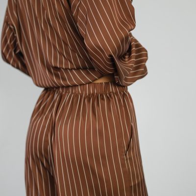 Striped Silk Pajama Set: Brown Women’S Loungewear With