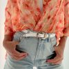 Soft Glossy Sweater Translucent Top Cold Shoulder Long